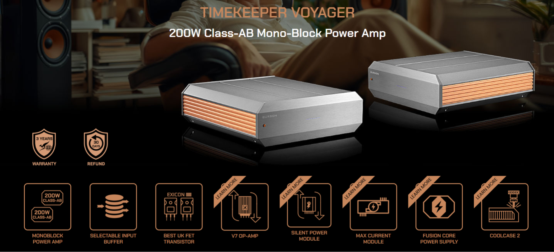 BURSON Audio Timekeeper Voyager Mono Power Amplifier # 100 Watt / 8 Ohm - 200 Watt / 4 Ohm
