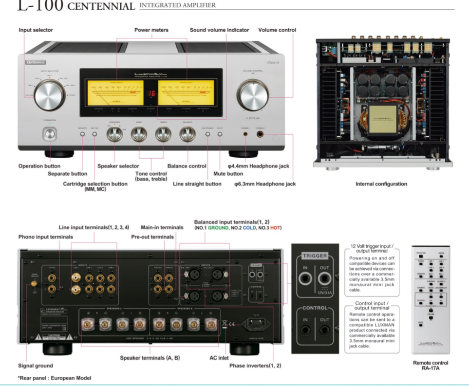 | Luxman L - 100 Centennial Integrated Amplifier Class A | € 12.999,- | £ 12.900,- | $ 000,- |