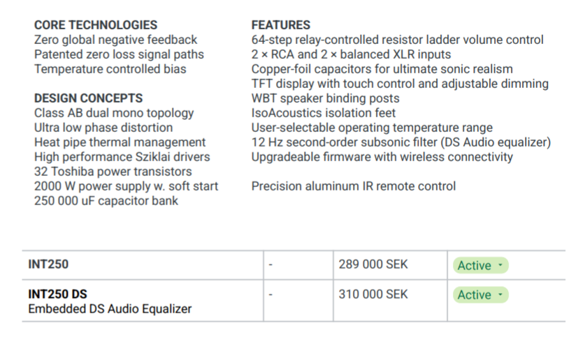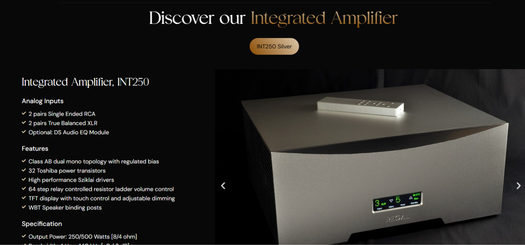 | REGAL INT 250 Integrated Amplifier * Silver | € 26.515,- | £ 000,- | $ 000,- |