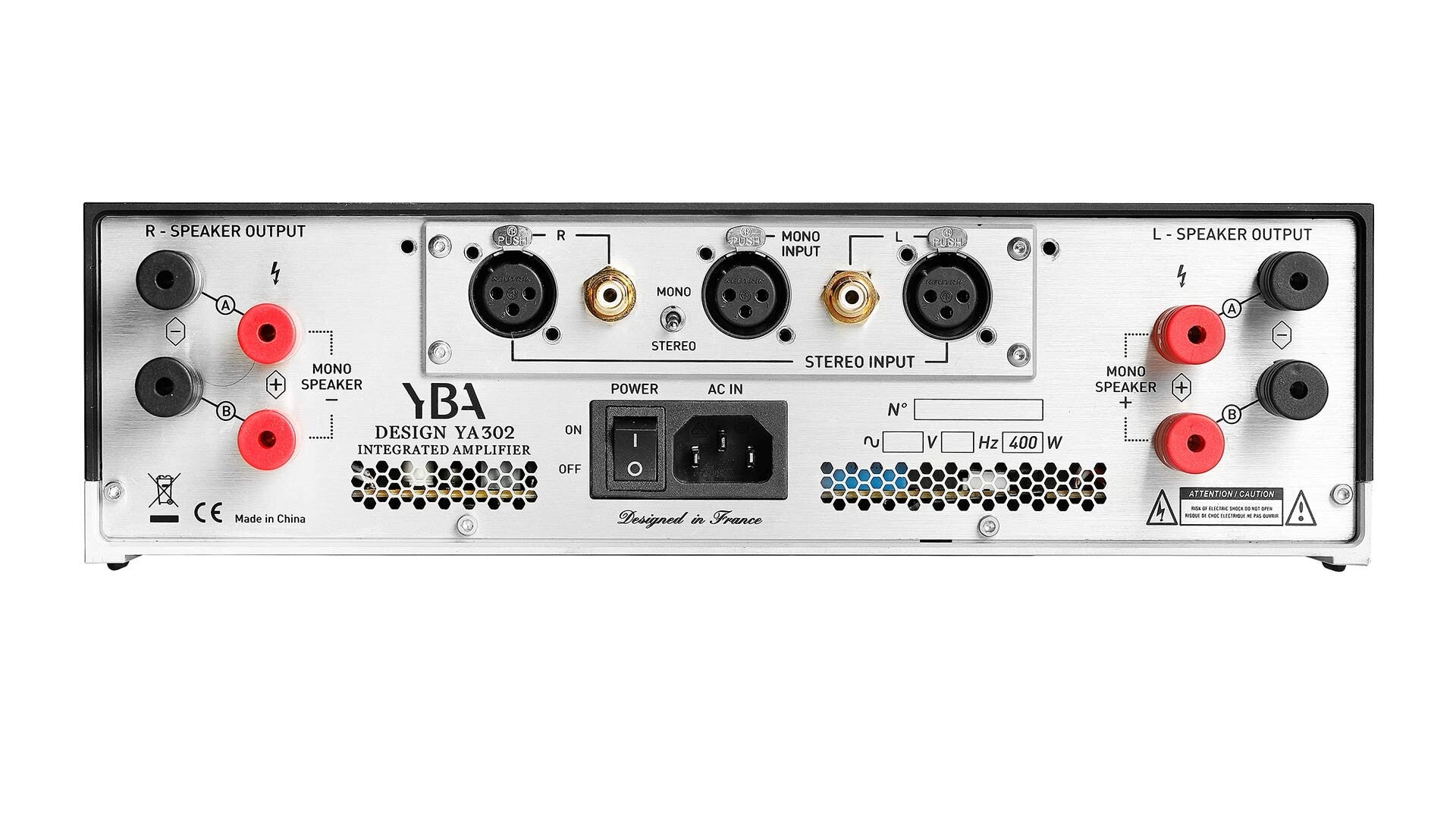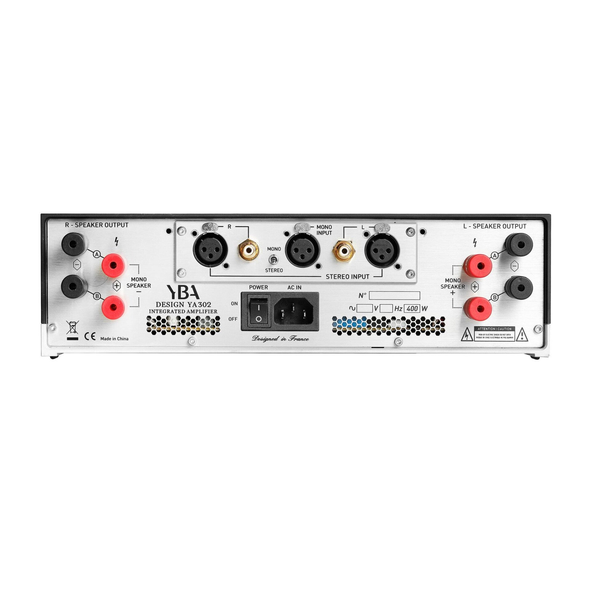 YBA Design YA302 Integrated Amplifier # Providing up to 2 x 100 Watt / 8 Ohm - 2 x 155 Watt / 4 Ohm in Standard Mode Or Boosting Output up to 317 Watt / 8 Ohm - 387 Watt / 4 Ohm in Bridged Mono Mode.