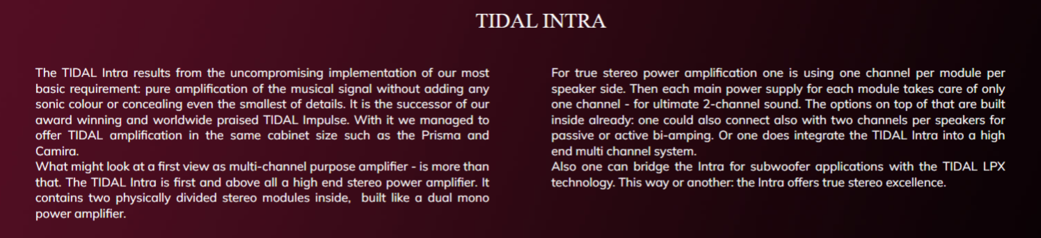 Tidal Audio * Intra * Stereo Power Amplifier - € 32.000,- * £ 32.000,- * $ 30.000,-