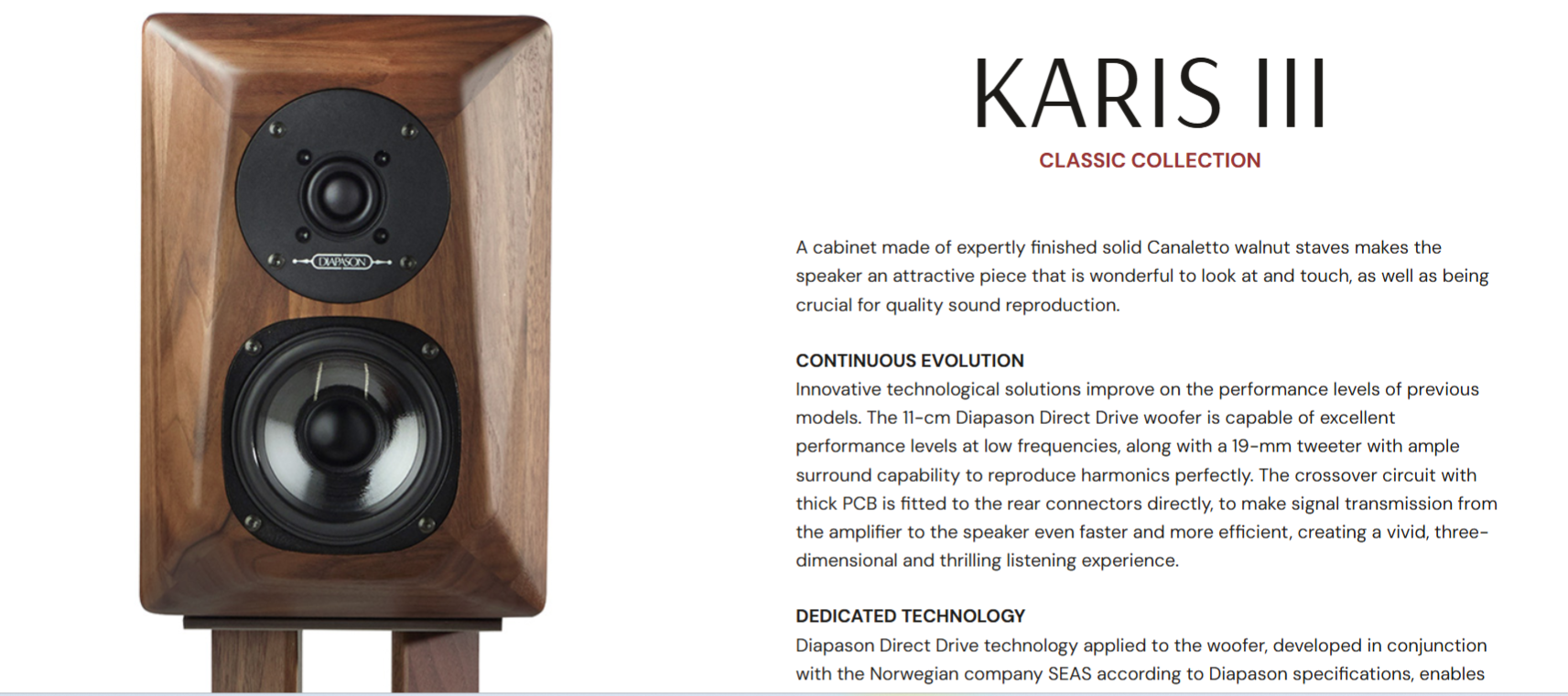 | Diapason Karis III Excel Bookshelf loudsp.* Solid Walnut Wood | € 4.650,- | £ 4.649,- | $ 000,- |