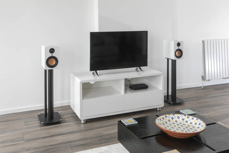 Mitchell Acoustics say that the uStream One work best one speakers stands ( Solid Steel loudspeaker stands ), however they will work happily on a bookshelf or any suitable furniture.