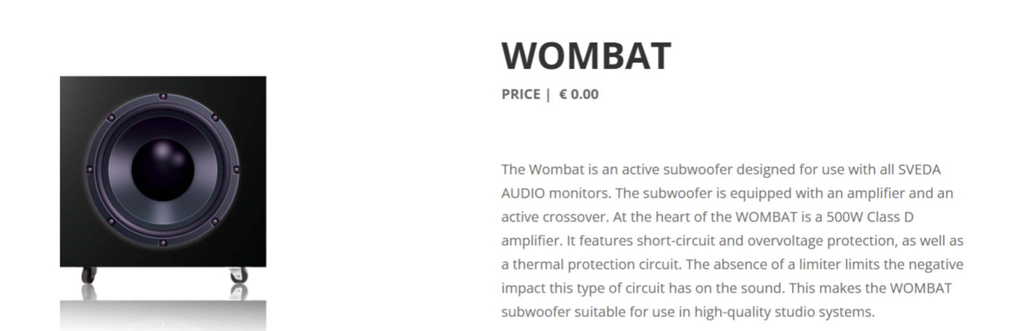 | Sveda Audio WOMBAT Subwoofer | € 000,- | £ 000,- | $ 000,- |