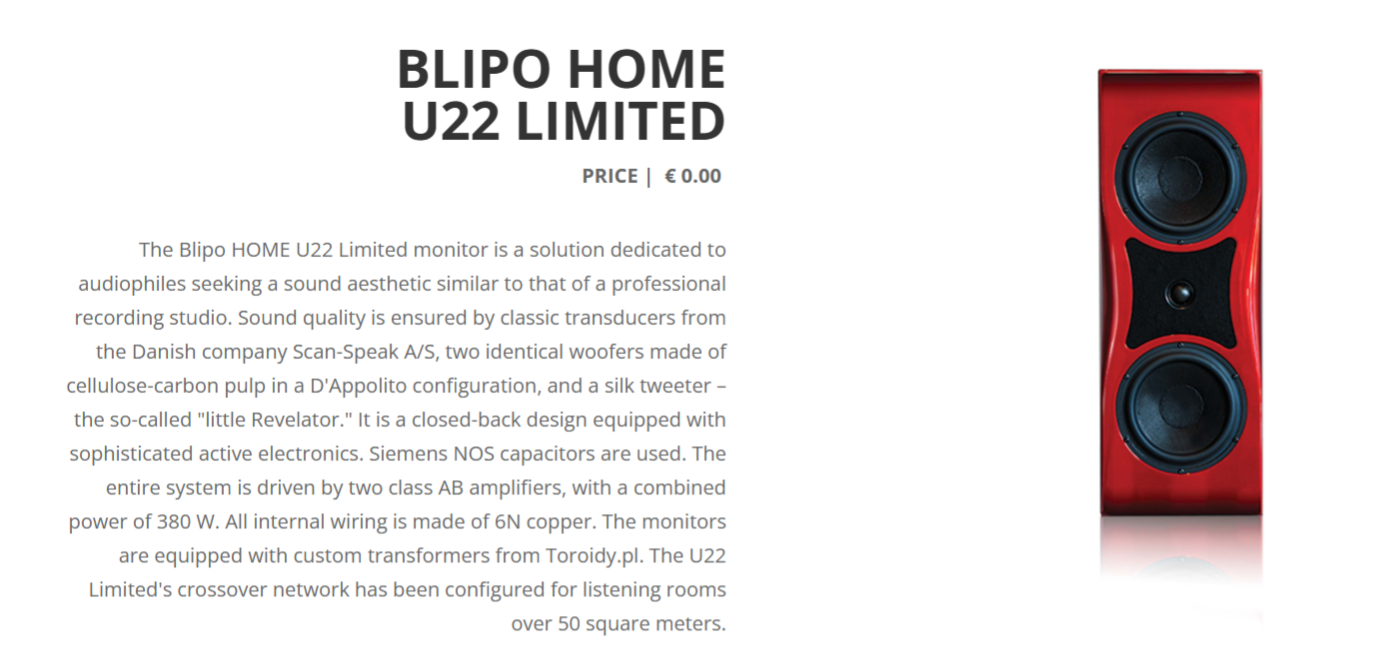 | Sveda Audio BLIPO Home U22 Limited loudspeaker | € 000,- | £ 000,- | $ 000,- |